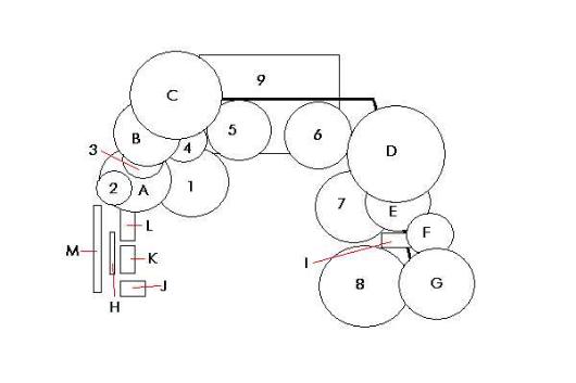 | DRUMS: All drums Pearl Export (Circa. 1987, 9 Ply Luan Mahogany shells), Stainless Steel covering, (except noted) 1) 7" x 12" Pearl Soprano Snare (Maple shell, Liquid Amber lacquer, Circa. 1995) **** Sometimes used in the place of the Soprano snare would be either **** 7" x 12" Fibes Crystalite AFT Snare (Amber shell, Circa. 2001) 6.5" x 14" Custom Snare (Maple shell, Blue Topaz stain, Circa. 2003) 6.5" x 14" Pearl Export Snare (Steel shell) 2) 6" Remo Roto-Tom * 3) 8" Remo Roto-Tom * 4) 10" Remo Roto-Tom * 5) 10" x 12" Tom 6) 11" x 13" Tom 7) 16" x 16" Floor Tom (with "Air Suspension" rubber tips on legs) 8) 16" x 18" Floor Tom (with "Air Suspension" rubber tips on legs) * 9) 16" x 22" Bass HEADS: Toms - Remo Pinstripe "Ebony" (batter), Remo Ambassador "Clear" (bottom) Bass - CYMBALS: Impression PERCUSSION: All percussion mounted on a Rhythm Tech Quad Mount, except for "I" and "L" I) LP Rock Ridge Rider Cowbell (mounted on the ICON rack) J) Chrome Cowbell * K) LP Jam Block - High * L) LP Jam Block - Low (mounted on EITHER a Pearl adapter or Rhythm Tech Quad Mount) M) Indian Street Chimes * HARDWARE: All Pearl (except for the throne) Pearl ICON Rack (all cymbals and LP Cowbell mounted on the rack) 3 Boom stands 1 Boom arm adapter 1 Straight stand 1 Snare Stand - (with a Pearl SBA - 1/3 Basket Adapter, when using 12" Snare drum) 1 Hi-Hat Stand (Circa. 1987, uses CL-98 Hi-Hat Clutch) 1 CHL-100 X-Hat boom arm 1 Power Shifter Pedal (P201) Motion-Pro Drum Throne (Pro-1 or Custom-S) STICKS: Salyers Percussion 5A MUFFLING: No muffling on any of the drums (99% of the time). The only muffling done is to the snare and/or 18" floor tom (when needed) and Moongel Damper Pads are used for the muffling. * = Optional piece of equipment (depends on the setup situation / space) |