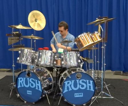 | <--- Playing Neil Peart's 1974 Slingerland kit "Chromey" at PASIC 2012 |