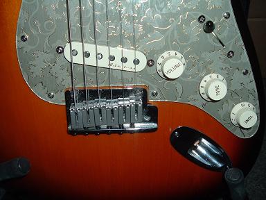 Below is a few pictures of the Stratocaster with the new pickguard (designed by me) with Fender Vintage