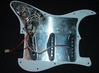 The original pickguard & pickups of the Stratocaster (with modified plug added) This part is stamped May 28, 1997